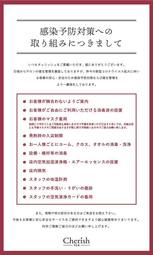 いつもCherishをご愛顧頂き誠にありがとうございます。定休日のお知らせです。
